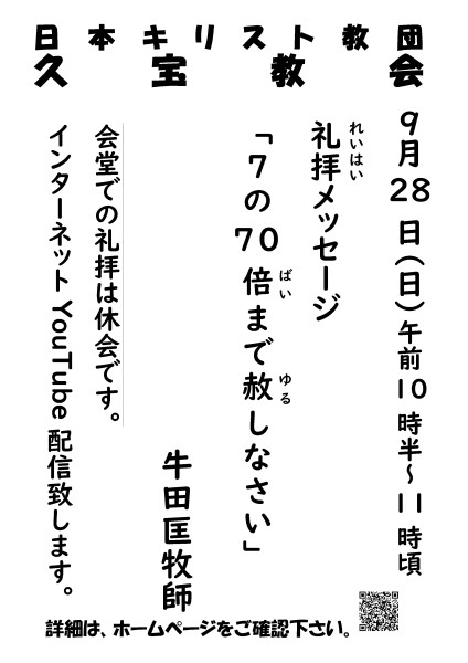 メッセージ「7の70倍まで赦しなさい」牛田匡牧師