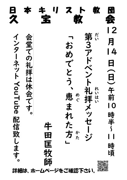 【郵便振替】00980-5-212130「日本基督教団久宝教会」