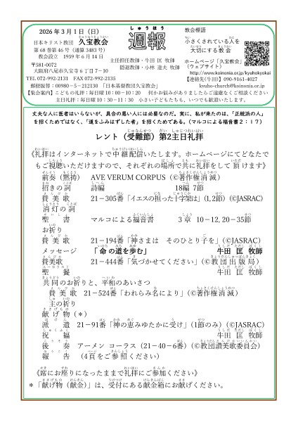 3月1日 礼拝のお知らせ